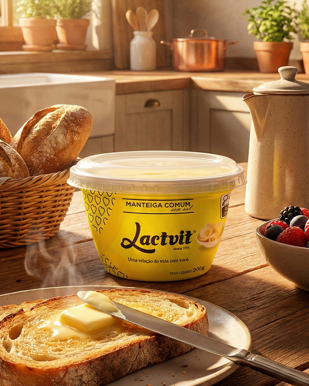 A Lactvit, reconhecida pela excelência de seus produtos como queijos provolone, mussarela, manteigas e requeijão, identificou a necessidade de elevar sua presença digital e destacar ainda mais suas embalagens no mercado competitivo de alimentos. Ao perceber que as imagens tradicionais não refletiam o “appetite appeal” e a qualidade da marca, a empresa tomou a decisão estratégica de investir na criação de um projeto exclusivo de Mockup 3D de Embalagens Laticínios.